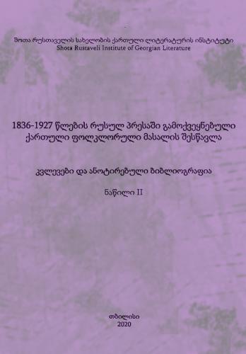 1836-1927 წლების რუსულ პრესაში გამოქვეყნებული ქართული ფოლკლორული მასალის შესწავლა : კვლევები და ანოტირებული ბიბლიოგრაფია, ნაწ. 2