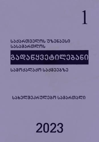 საქართველოს უზენაესი სასამართლოს გადაწყვეტილებანი სამოქალაქო, სამეწარმეო და გაკოტრების საქმეებზე N 1 – სახელშეკრულებო სამართალი