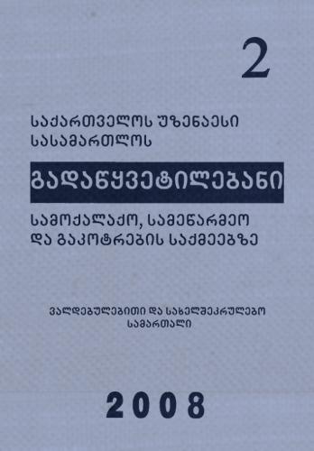 საქართველოს უზენაესი სასამართლოს გადაწყვეტილებანი სამოქალაქო საქმეებზე N 2 – ვალდებულებითი და სახელშეკრულებო სამართალი