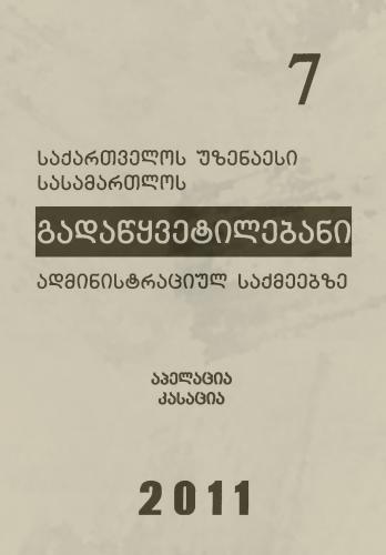 საქართველოს უზენაესი სასამართლოს გადაწყვეტილებანი ადმინისტრაციულ საქმეებზე N 7 – აპელაცია კასაცია