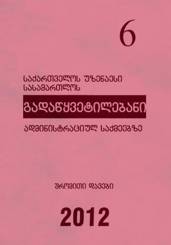 საქართველოს უზენაესი სასამართლოს გადაწყვეტილებანი ადმინისტრაციულ და სხვა კატეგორიის საქმეებზე N 6 – გარიგებანი