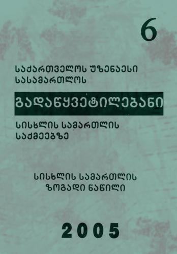 საქართველოს უზენაესი სასამართლოს გადაწყვეტილებანი სისხლის სამართლის საქმეებზე – N 6 სისხლის სამართლის ზოგადი ნაწილი