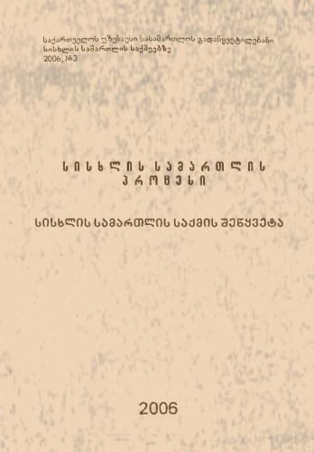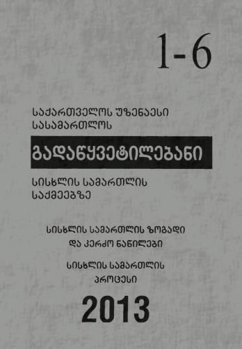 საქართველოს უზენაესი სასამართლოს გადაწყვეტილებანი სისხლის სამართლის საქმეებზე – N 1-6 სისხლის სამართლის ზოგადი და კერძო ნაწილები, სისხლის სამართლის პროცესი