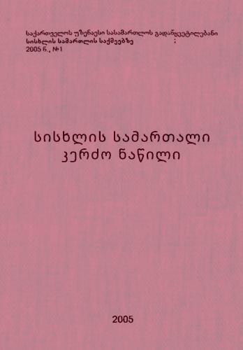 საქართველოს უზენაესი სასამართლოს გადაწყვეტილებანი სისხლის სამართლის საქმეებზე N 1 – სისხლის სამართალი, კერძო ნაწილი