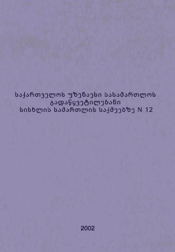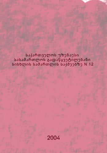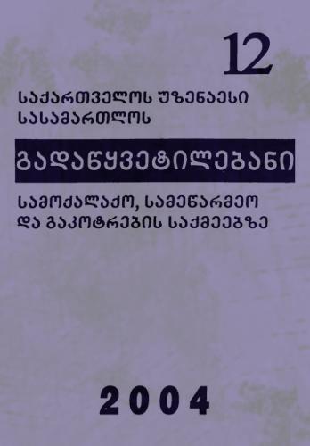 საქართველოს უზენაესი სასამართლოს გადაწყვეტილებანი სამოქალაქო, სამეწარმეო და გაკოტრების საქმეებზე N 12