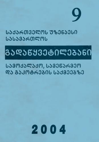 საქართველოს უზენაესი სასამართლოს გადაწყვეტილებანი სამოქალაქო, სამეწარმეო და გაკოტრების საქმეებზე, N 9