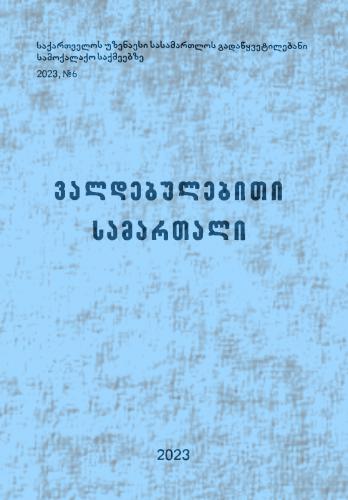 საქართველოს უზენაესი სასამართლოს გადაწყვეტილებანი სამოქალაქო, სამეწარმეო და გაკოტრების საქმეებზე N 6 – ვალდებულებითი სამართალი