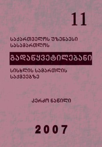 საქართველოს უზენაესი სასამართლოს გადაწყვეტილებანი სისხლის სამართლის საქმეებზე N 11 – კერძო ნაწილი