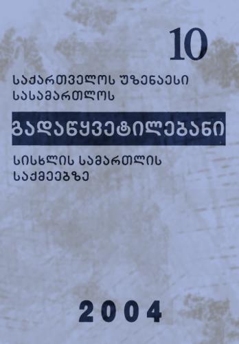 საქართველოს უზენაესი სასამართლოს გადაწყვეტილებანი სამოქალაქო, სამეწარმეო და გაკოტრების საქმეებზე, N 10