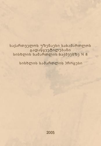 საქართველოს უზენაესი სასამართლოს გადაწყვეტილებანი სისხლის სამართლის საქმეებზე N 8 – სისხლის სამართლის პროცესი