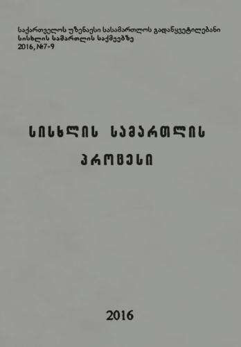 საქართველოს უზენაესი სასამართლოს გადაწყვეტილებანი სისხლის სამართლის საქმეებზე N 7-9 – სისხლის სამართლის პროცესი
