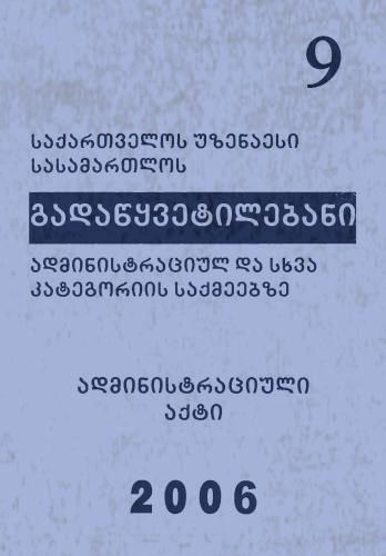 საქართველოს უზენაესი სასამართლოს გადაწყვეტილებანი ადმინისტრაციულ და სხვა კატეგორიის საქმეებზე N 9 – ადმინისტრაციული აქტი
