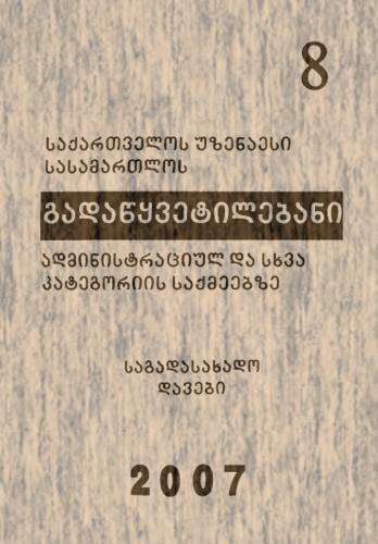 საქართველოს უზენაესი სასამართლოს გადაწყვეტილებანი ადმინისტრაციულ და სხვა კატეგორიის საქმეებზე N 8 – მიწის დავები
