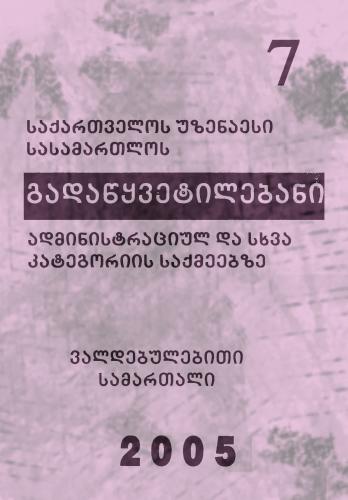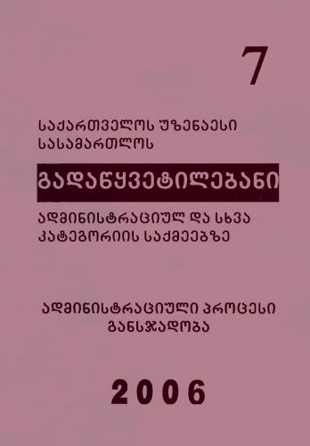 საქართველოს უზენაესი სასამართლოს გადაწყვეტილებანი ადმინისტრაციულ და სხვა კატეგორიის საქმეებზე N 7 – ადმინისტრაციული პროცესი