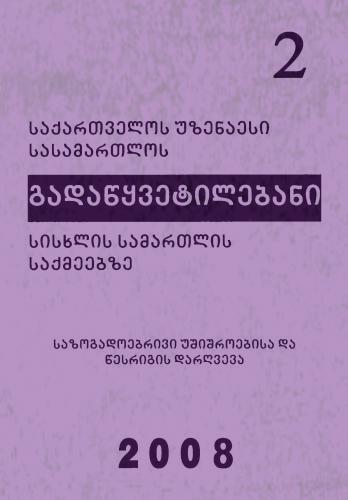 საქართველოს უზენაესი სასამართლოს გადაწყვეტილებანი სამოქალაქო საქმეებზე N 2 – სანივთო სამართალი