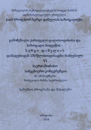 გამოჩენილი ქართველი ფილოსოფოსისა და საზოგადო მოღვაწის - სერგი დანელიას დაბადებიდან 130 წლისთავისადმი მიძღვნილი VI საერთაშორისო სამეცნიერო კონფერენცია, 26-28 ნოემბერი