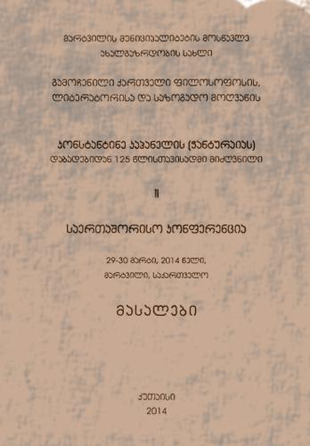 გამოჩენილი ქართველი ფილოსოფოსის, ლიტერატორისა და საზოგადო მოღვაწის კონსტანტინე კაპანელის (ჭანტურაიას) დაბადებიდან 125 წლისთავისადმი მიძღვნილი II საერთაშორისო კონფერენცია, 29-30 მარტი, 2014 წელი